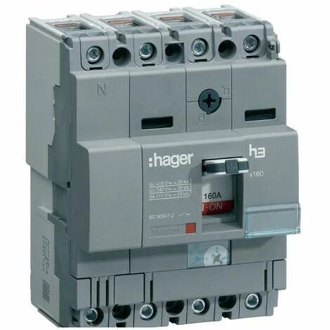 Thermomagnetischer Schutzschalter Hager X160 in Kastenbauweise mit den folgenden Merkmalen: