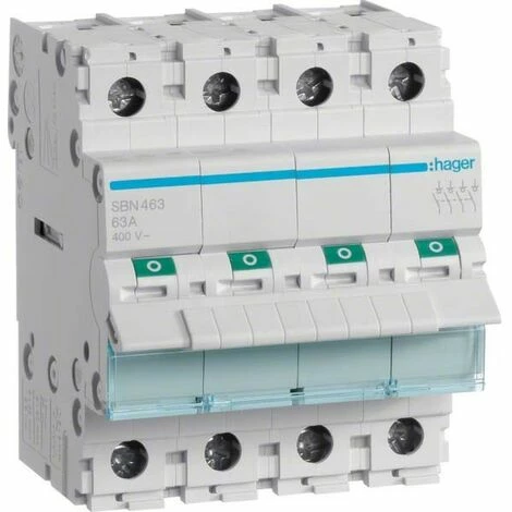 Geliefert wird: Hager Ausschalter 4P 63A SBN463, Verpackungseinheit: 1 Stück, EAN: 3250615510235