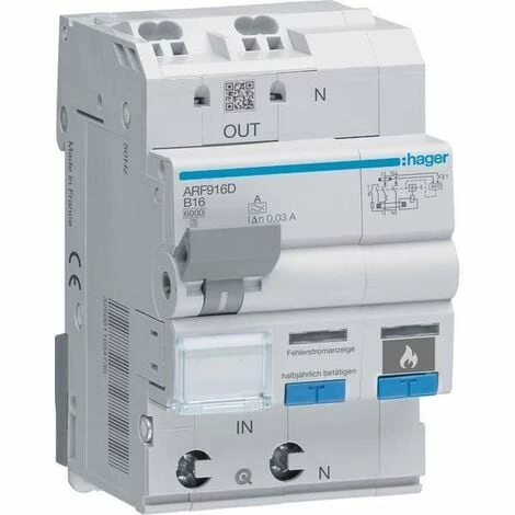 Geliefert wird: Hager Fehlerlichtbogen-Schutz 1P+N 6kA B-16A 30mA ARF916D, Verpackungseinheit: 1 Stück, EAN: 3250611034766