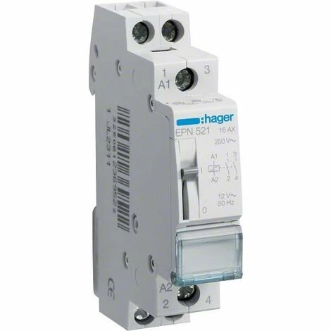 Geliefert wird: Hager Fernschalter 2S, 12V,16A EPN521, Verpackungseinheit: 1 Stück, EAN: 3250612369522