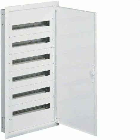 Metall-Unterputz-Verteiler mit 6 Reihen und 24 Modulen mit einer Tiefe von 110 mm. Diese Box in Weiß und mit einer Verteilung von bis zu 125 A hat eine Isolationsspannung von 400 V und ein abnehmbares modulares Chassis und Erdungsklemmen. Somit hat das Stück die Schutzart IP30 und IK07. Darüber hinaus ist die Box Teil der FW2-Serie, einer Linie, die eine Vielzahl von Produkten mit innovativen und zeitlosen Designs anbietet, die sich auf Qualität und Funktionalität konzentrieren und für das Gebäudemanagement geeignet sind.
