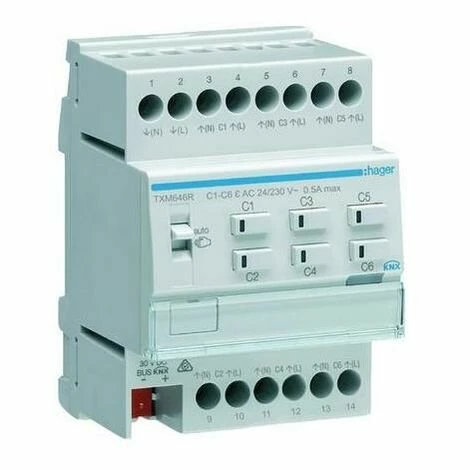 Hager Heizungsaktor 6fach KNX easy, mit Regler für 24/230V Stellantriebe, Triac. Heizungsaktor (REG) mit 6 elektronischen Ausgängen (Triac) zur geräuschlosen Ansteuerung von elektrothermischen Stellantrieben für Heizanlagen oder Kühldecken. Bestehend aus Reihen