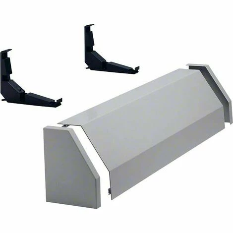 Kabelrangierkanal, 2-feldig, RAL7035, zur Wandmontage. Elektro-Installationskanal-System Rangierkanal RK aus Kunststoff als Übergang zwischen verlegten Leitungen oder Installationskanälen und Verteilerschränke. Rangierkanal Set bestehend aus Kanalprofil mit Sollbruchstellen zum Ausklinken für Installationskanäle für Tiefe 40, 50 und 60 mm. Zwei Profilhalter für Schränke bis Feldbreite 800 mm sowie drei Profilhaltern bis Feldbreite 1300 mm. Aufsteckbare Endkappen für links und rechts sind zu verschließen.