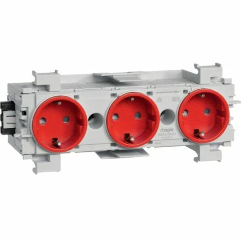 Steckdose 3-fach Wago Steck-Klemmtechnik halogenfrei frontrastend verkehrsrot. Kanalsteckdose mit erhöhtem Berührungsschutz, vorverdrahtet, anreihbar durch 3-poliges Steckverbindersystem mit Schnellbefestigung für frontrastender Geräteeinbau. Leitungsanschluss über Steckklemmen 1,5 – 2,5 mm² oder über verpolungssicheres Steckverbindersystem.