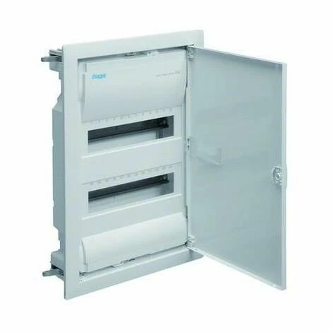 Hager Kleinverteiler,volta,HWV,2x12PLE,IP30,m.Tür. Installationskleinverteiler Hohlwand aus Kunststoff, nach DIN VDE 60670-24 und DIN 43871, geeignet zum Einsatz in Wohngebäuden nach DIN 18015. Zum Einbau von Geräten bis 63 A mit 70 mm Einbautiefe nach Maßnorm