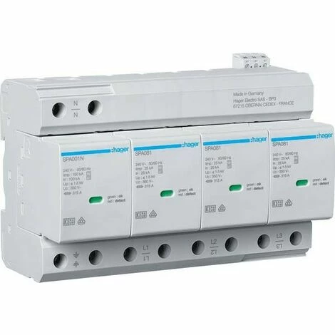 Geliefert wird: Hager Kombiableiter T1+T2 4P Uc350V Iimp SPA801, Verpackungseinheit: 1 Stück, EAN: 3250615514844