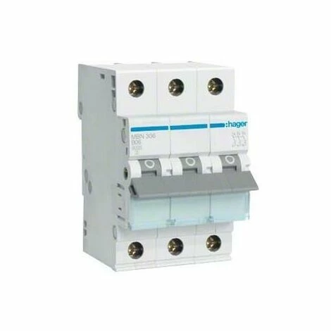 Geliefert wird: Hager Leitungsschutzschalter 3pol. B-6A, 6kA MBN306, Verpackungseinheit: 1 Stück, EAN: 3250614310379