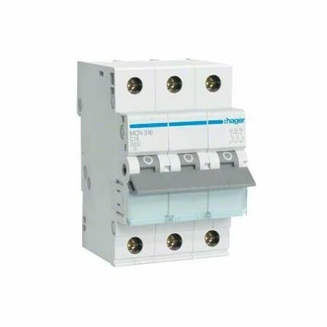 Geliefert wird: Hager Leitungsschutzschalter 3pol. C-16A, 6kA MCN316, Verpackungseinheit: 1 Stück, EAN: 3250614311451