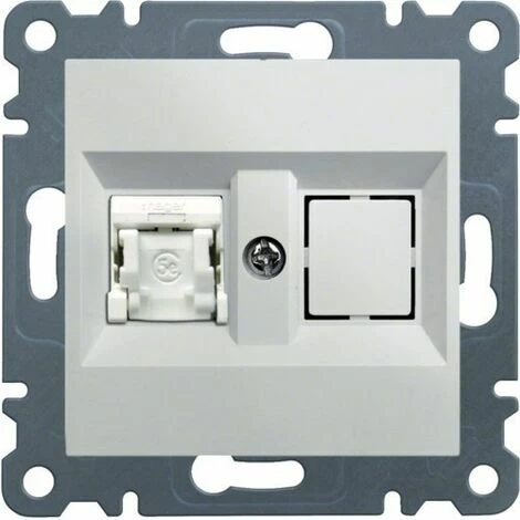 1xRJ45 Kategorie 6 UTP-Buchse aus einer Kombination aus polarweißem Kunststoff und Metall mit glänzender Oberfläche. Für die Montage sind für die Montage Spreizkrallen und eine Schraubbefestigung erforderlich. Dieses Produkt ist in einer Produktreihe namens Berker S.1, B.3, B.7 etabliert, die letztendlich Designs für intelligentes Gebäudemanagement entwickelt und die Qualität seiner Materialien und sein innovatives Design als Grundpfeiler festlegt Funktionalität opfern.
