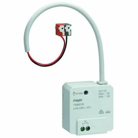 Hager Schaltaktor 1fach,10A / 230Vß, UP, KNX. Unterputz-Schaltaktor zum Schalten einer unabhängigen Last durch potentialfreie Schließer. Mit integriertem Busankoppler, KNX Busanschluss über vorkonfektionierte Leitung, Last-Schraubklemmen. LED-Taste für Handbedi