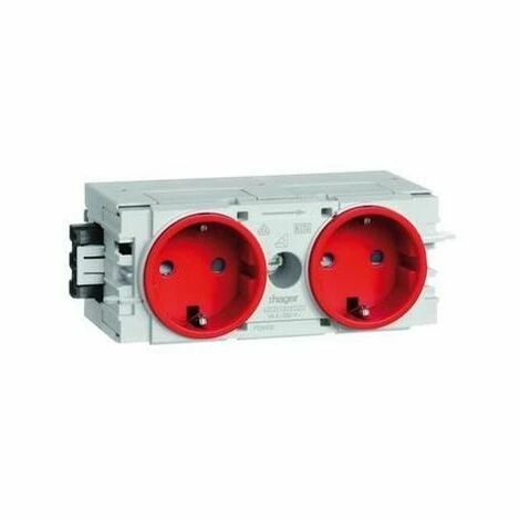 Hager Steckdose 2-fach mit Wago Steck-/Klemmtechnik C-Profil in verkehrsrot. Kanalsteckdose mit erhöhtem Berührungsschutz, vorverdrahtet, anreihbar durch 3-poliges Steckverbindersystem mit Schnellbefestigung für Geräteeinbausystem mit C-Profil. Leitungsanschlus