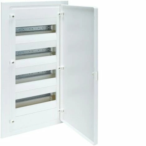 Golf-Einbaubox der Serie VF mit 48 Modulen und weißer undurchsichtiger Tür. Das Zubehör hat 4 Reihen und wird mit Rollläden, Leiste, mit Kunststofffolie geschützter Tür und Kabelbindern geliefert. Somit zeichnet sich die Box durch eine 180°-Öffnung und einen 650°C-Glühdrahttest aus. Ebenso behält das Gerät mit dem AENOR-Zertifikat die Schutzart IP40 und einen IK07-Schutzindex gegen mechanische Stöße. Darüber hinaus bietet das Golfsortiment der VF-Serie eine Vielzahl von Produkten, die RoHS- und WEEE-konform sind.