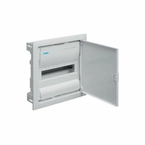 Der Unterputz-Kleinverteiler inklusive fingersicherer QuickConnect-Klemme (PE/N-Klemme, N-Klemme für FI-Kreise), Gerätetragschienen und 12 Teilungen. Stahlblechtür mit versenktem Griff. Erfüllt DIN VDE 0603-1, DIN