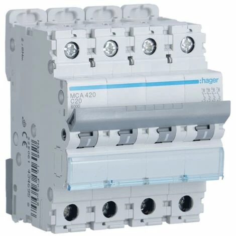 Leistungsschalter 4P Hager 20A 6KA C 4 module MCA420