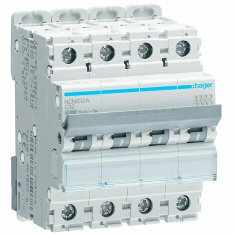 Leistungsschalter 4P Hager 32A 10KA C 4 module NCN432A