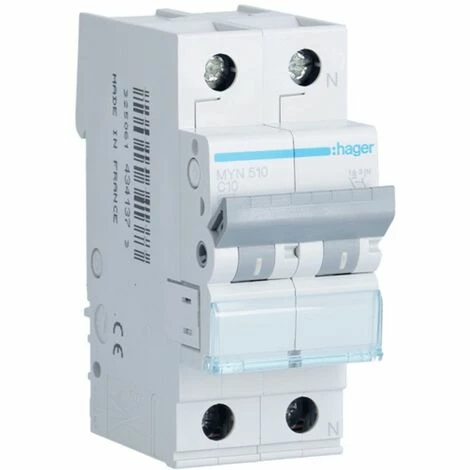 Leistungsschalter Hager 1P+N 10A 4,5 KA C 2 module MYN510